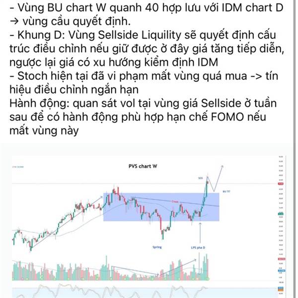 - Chart W: Các pha sự kiện Wyckoff hoàn chỉnh, LPS pha D -> SOS thoát Creek -> kỳ vọng tạo BU sau nhịp tăng. - Vùng BU chart W quanh 40 hợp lưu với IDM chart D → vùng cầu quyết địn...Thêm