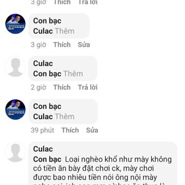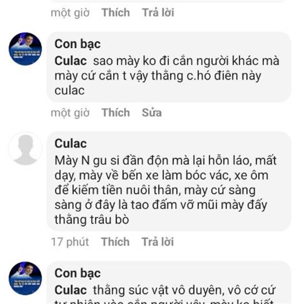 Mọi người ơi thằng c.hó điên này là đồng bọn của thằng Chủ tịch Nhơn chơi mất dạy này, tôi có chửi nó đâu mà tự nhiên nó vào bình luận cắn tôi này nó tên là culac chó
