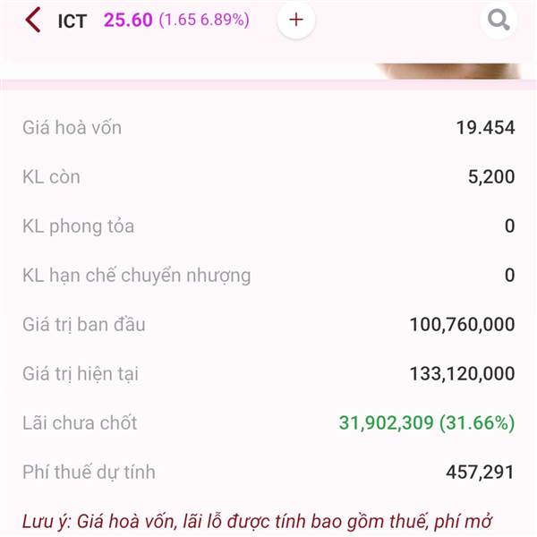 Hôm nay chốt 1/2 MSR do đụng cản tuần. Bên Dnse % lãi tính theo số tiền vốn, ko tính margin nên % lãi hơi ảo.