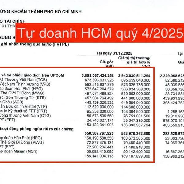 HCM đã bán hết nhóm cổ phiếu có vốn hóa Nn tăng mạnh trong ngày cuối cùng của năm 2025(VNM. CTG. BID, SAB,VCB) Cơ hội đã bỏ lỡ vậy HCM rơi về vùng nào?