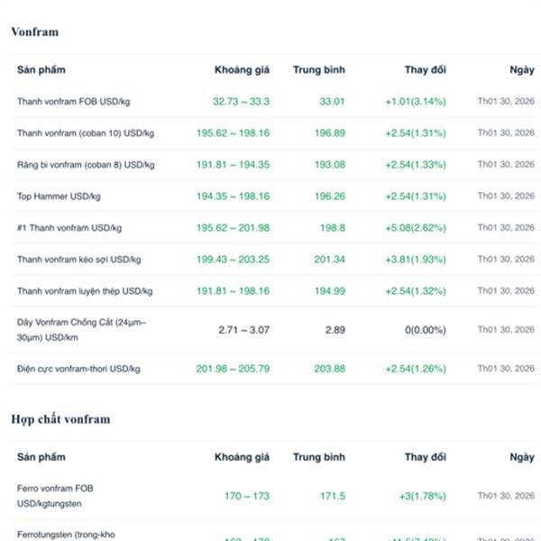 Giá vàng, giá bạc sập nhưng vonfram đâu có ảnh hưởng.