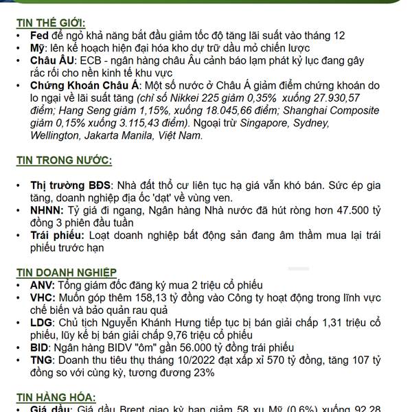 CẬP NHẬT THỊ TRƯỜNG PHIÊN SÁNG NAY NGÀY 18/11/2022