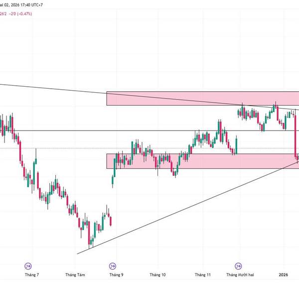 1. Tổng quan xu hướng : - Xu hướng chính: GIẢM - Từ vùng quanh 650 (đầu năm 2025) giá tạo chuỗi lower high - lower low rất rõ. Nhịp tăng gần đây chỉ là hồi kỹ thuật ...Thêm