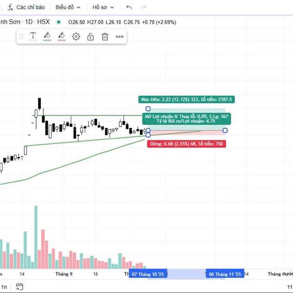 Vùng 26 test 4 lần không thủng. Vol bán nhỏ dần. BB đi ngang bóp lại.