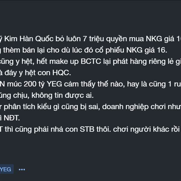 Thằng này phân tích như đúng rồi quỹ KIM nó không mua được quyền vì bị UBCK cấm giao dịch 4 tháng do bán chui chứng chỉ quỹ 😀Tuy không cầm NKG và cũng không có ý định mua vì ngành thép nát nhưng cái ...Thêm