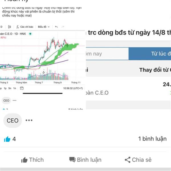 Cũng giúp được một số a e nhịp vừa rồi cả 3 CP. Ceo tb >30% (mình có đăng hm 8/10), Dig thì được cả KL cũ + quyền tb 25%, Dxg vị thế nay tb >10%