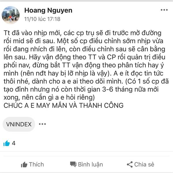 Tt đã vào nhịp mới, các cp trụ sẽ đi trước mở đường rồi mid sẽ đi sau. Một số cp điều chỉnh sớm nhịp vừa rồi đang nhích đi lên, còn điều chỉnh sau sẽ cân bằng lên sau. Hãy vận động theo TT và CP rồi q...Thêm