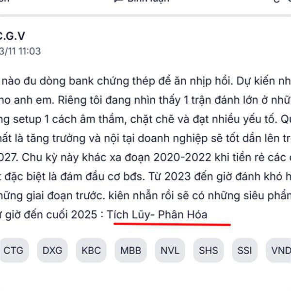 Nhìn đâu cũng thấy tiêu cực. Nhưng toàn nhìn ngắn quá. Sao không ai thấy 1 bức tranh rất đẹp đang được vẽ ra và hiện tại cứ để thị trường siết biên đi. Rồi sẽ có 1 trận rất lớn cho năm sau. Anh em ki...Thêm
