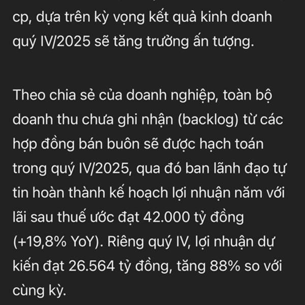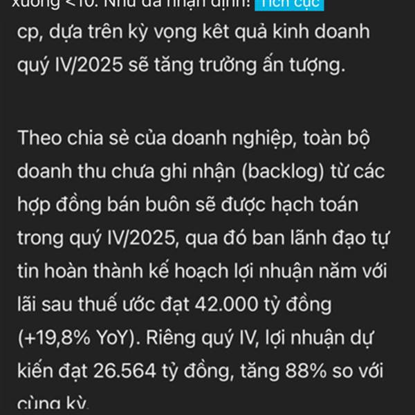 Q4 dự kiến hạch toán lợi nhuận 26.5k tỷ, kéo p/e xuống <10. Như đã nhận định!