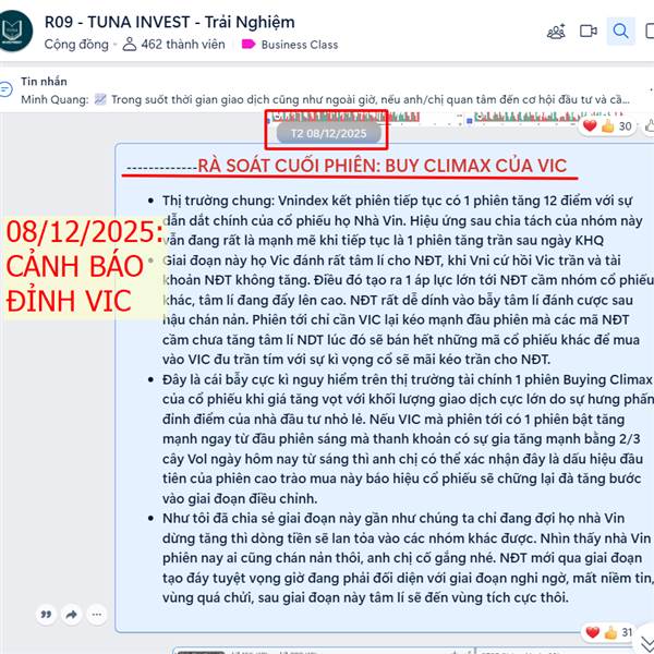 08/12/2025: RÀ SOÁT CUỐI PHIÊN: BUY CLIMAX CỦA VIC Thị trường chung: +) Vnindex kết phiên tiếp tục có 1 phiên tăng 12 điểm với sự dẫn dắt chính của cổ phiếu họ Nhà Vin. Hiệu ứng sau chia tách của nhóm ...Thêm