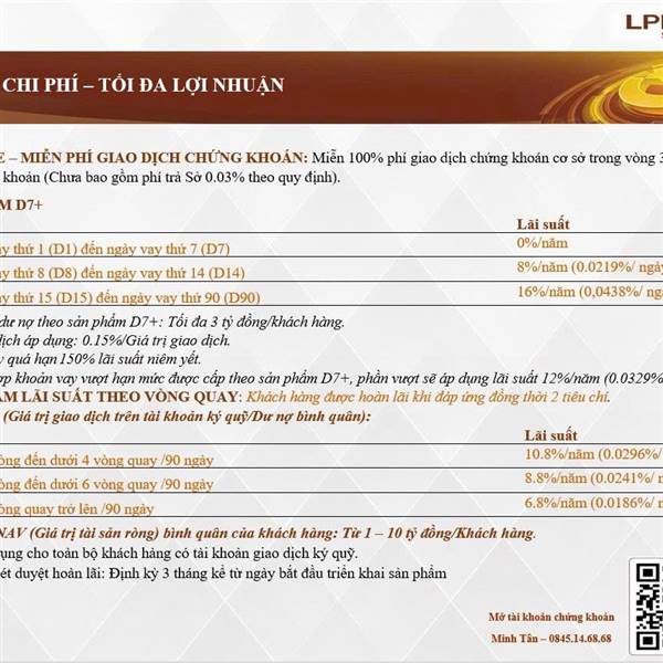 Hotttt: lãi suất 0%/7 ngày kể từ phát sinh sư nợ cho NĐT lướt sóng liên hệ em gấp