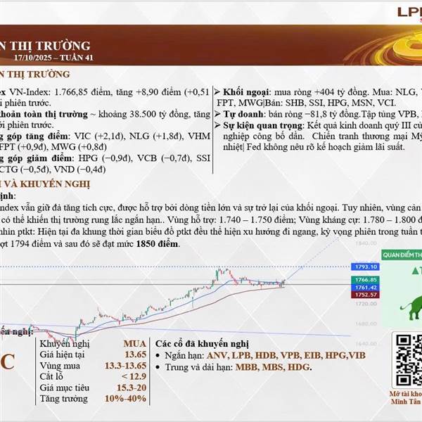 Thị trường sau khi thiết lập đỉnh mới quanh 1794 thì đã phiên hôm qua có xu hướng giảm nhẹ đi ngang, dự sẽ đi ngang 1-2 phiên nữa sẽ vượt 1794 điểm và hướng tới 1850 điểm ở các phiên sắp tới.