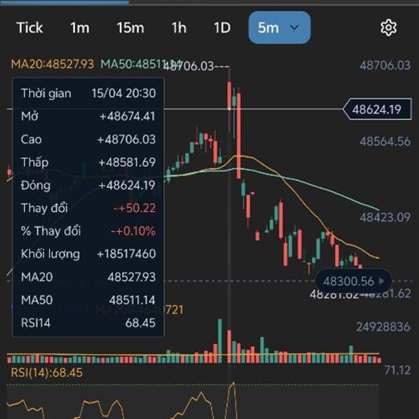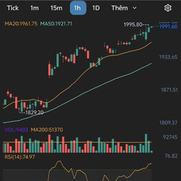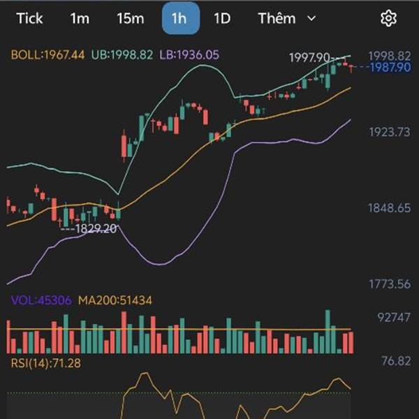 Nhìn vol 1H thấy thanh khoản khá cao rsi 76