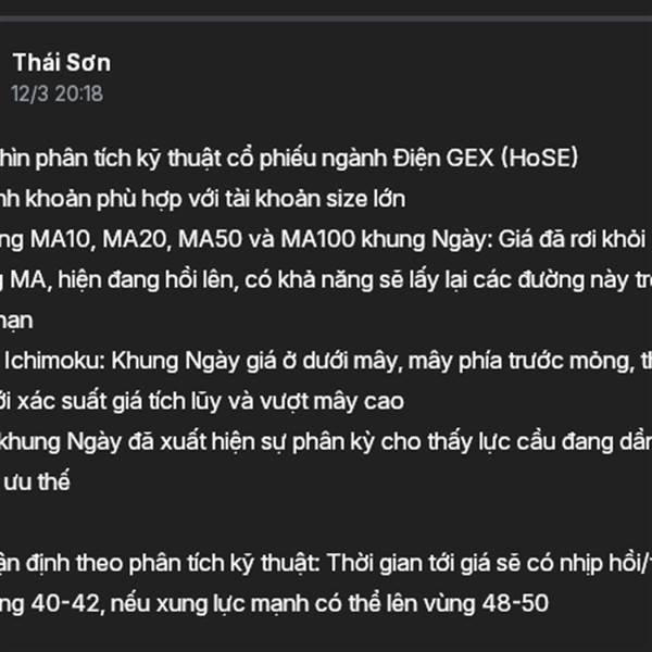 Góc nhìn phân tích kỹ thuật cổ phiếu ngành Điện GEX (HoSE) - Thanh khoản phù hợp với tài khoản size lớn - Đường MA10, MA20, MA50 và MA100 khung Ngày: Giá đã rơi khỏi các đường MA, hiện đang hồi lên, có ...Thêm