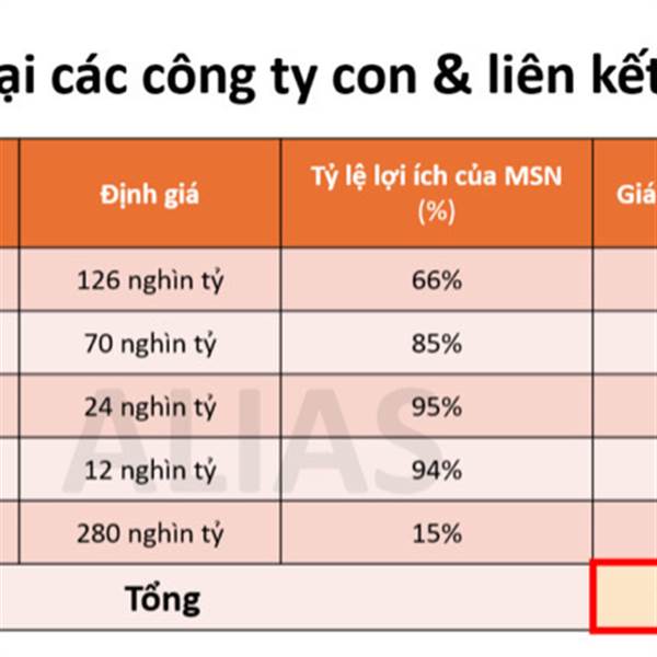 Cổ phần msn nắm tại các cty con và cty liên kết đã 220.000 tỷ, nhưng vốn hoá hiện tại quanh 130.000 tỷ.