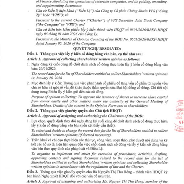 26/1 chốt danh sách cổ đông để lấy ý kiến bằng văn bản rồi.