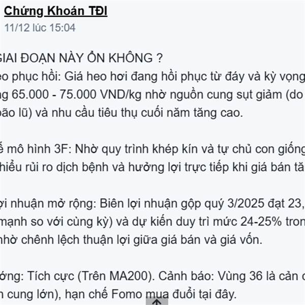 Tuần trước em đã có chia sẻ view BAF khi giá cổ phiếu về quanh 36, trong bối cảnh giá heo hơi bắt đầu cải thiện rõ rệt.