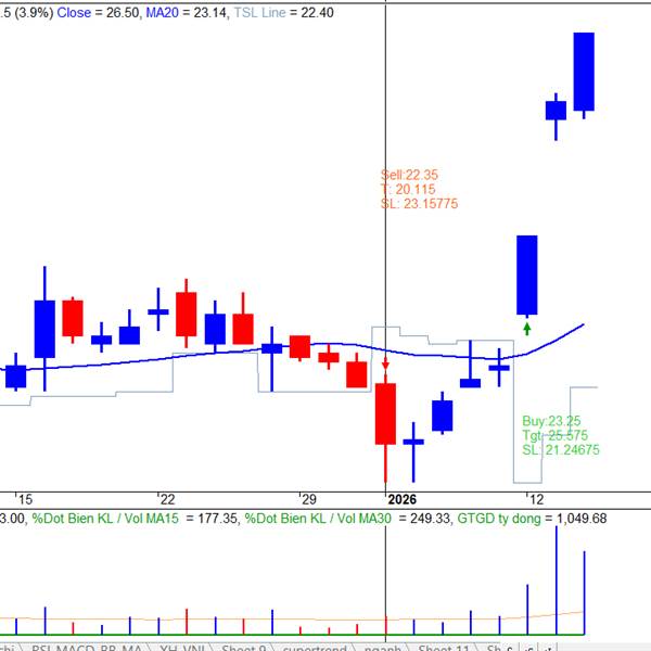 MBB vừa có nhịp rút chân khá tốt tại MA20, cho thấy lực cầu vẫn đang chủ động đỡ giá. Trong ngắn hạn, cổ phiếu cần thêm cây xác nhận vượt vùng 26 để chính thức xác nhận xu hướng tăng giá mới.