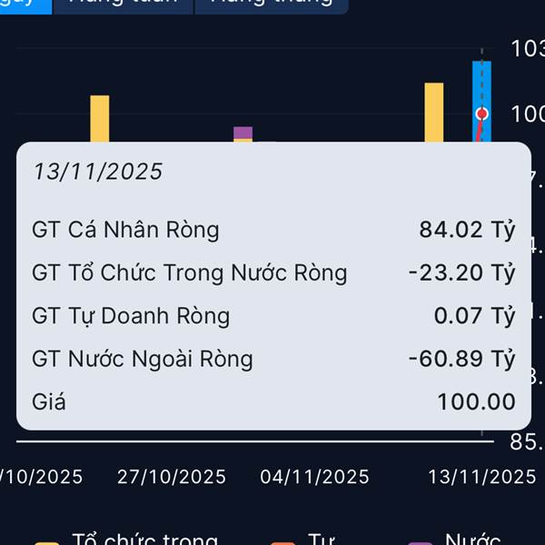 4 ngày liên tục vẫn là dòng tiền cá nhân đỡ cho lượng bán khối ngoại, hôm qua tự doanh còn bán bớt nữa. Mình nói cá nhân chứ k nói nhỏ lẻ để bác nào k chịu lại vào bảo lái tài khoản cá nhân.