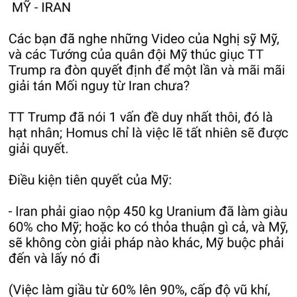 Các bạn đã nghe những Video của Nghị sỹ Mỹ, và các Tướng của quân đội Mỹ thúc giục TT Trump ra đòn quyết định để một lần và mãi mãi giải tán Mối nguy từ Iran chưa?