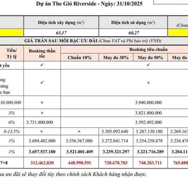 Hiện tại đã bán gần hết căn hộ, giá trung bình 50 - 52tr/m2. Thứ 7 vừa rồi có căn giá trần lên đến 65tr/m2.