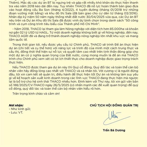 Tâm thư của Thaco gửi Cổ Đông, Đối tác và nhân viên tập đoàn…khi quyết định nộp phương án làm đường sắt Cao tốc Bắc Nam.