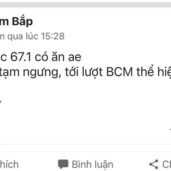 Ko chim lợn chim cú. Nếu ko có tin việc thi hành án trả nợ TMLan,thì Qcg sẽ quay lại 13x trong tuần sau, Thi hành án trả nợ là tin mạnh nhất để đánh lên,còn các tin khác thì ôi thôi bỏ hết đj bác bác, Qc...Thêm