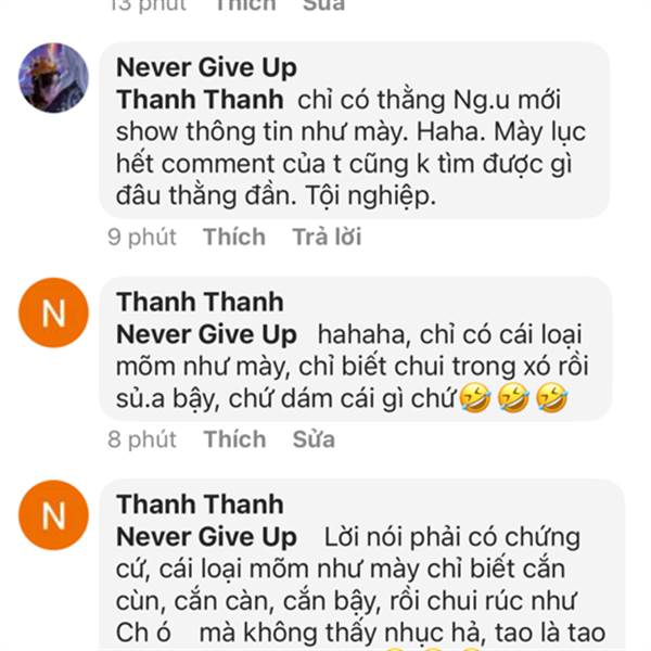 Hahaha, cái thể loại mõm đã Ng u còn tỏ ra nguy hiểm nữa chứ, tao lỡ để lộ số tk ngân hàng rồi, tao sợ quá, ôi đừng chuyển tiền vào tk nghang tao nha, tao sợ lắm đó. À mà tao còn 2 tk nghang nữ...Thêm
