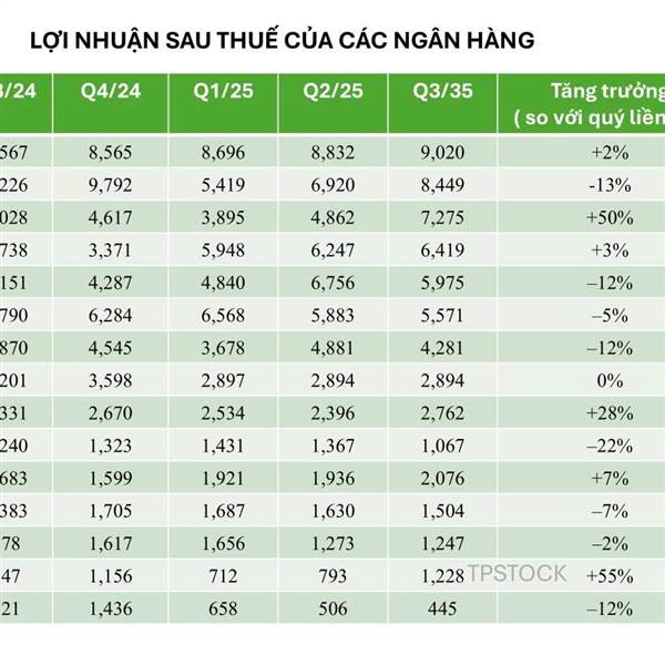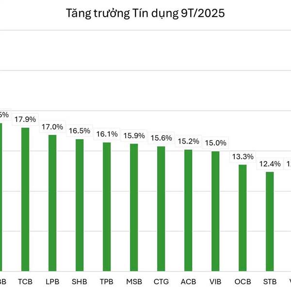 - 9 tháng 2025: phần lớn ngân hàng tăng trưởng tín dụng khá cao, phù hợp mục tiêu 16% của Chính phủ.