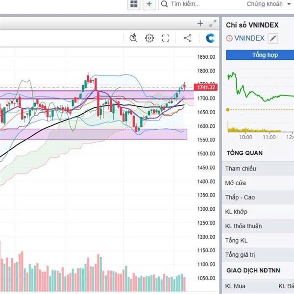 - VNIndex tiến gần vùng đỉnh cũ 1750–1800, thanh khoản cải thiện nhưng vẫn thấp; khối ngoại bớt bán ròng.