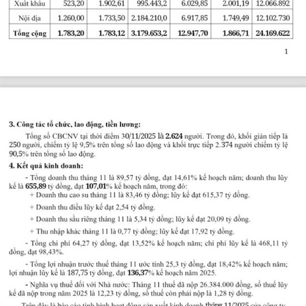 Tháng 11 lãi trước thuế 25.3 tỉ mai vượt 13