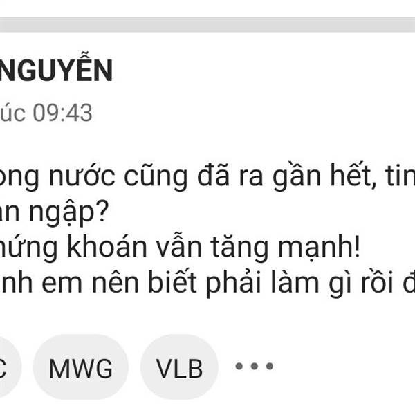 - Lêu lêu mấy ông lái! Đạp trụ để gom Midcap đã bị nhỏ lẻ tam sàn bắt bài hết rồi? - Đánh lên cho anh em ăn tết đi nhé? >>> Có ai còn Full hàng ko nhể! Hay lại vác dép chạy cả rồi?