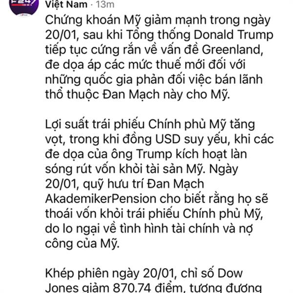 Tổng thống Mỹ Donald Trump ngày 17-1 tuyên bố Washington sẽ áp thuế nhập khẩu đối với 8 quốc gia châu Âu kể từ tháng 2-2026 và duy trì biện pháp này cho đến khi Mỹ hoàn tất việc mua lại đảo Greenland.