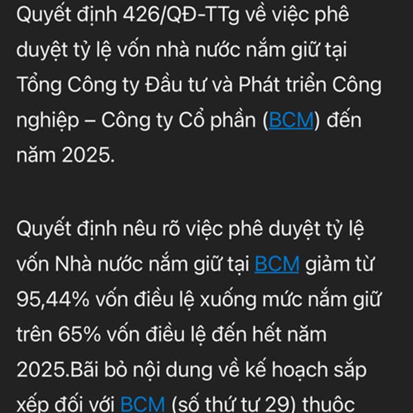 Đề nghị xem xét lại năng lực của Lãnh đạo Becamex. Kế hoạch thoái vốn BCM đã được Thủ tướng Chính phủ phê duyệt nhưng vẫn không triển khai thành công. Vào tháng 6/2024, Phó Thủ tướng CP đã ký quyết đị...Thêm