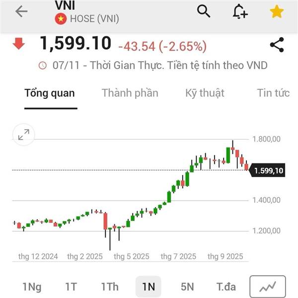Thủng mốc 1600 ,hi vọng thị trường sẽ tạo đáy trung hạn quanh vùng 1550 để có nhịp tăng cuối năm nay...