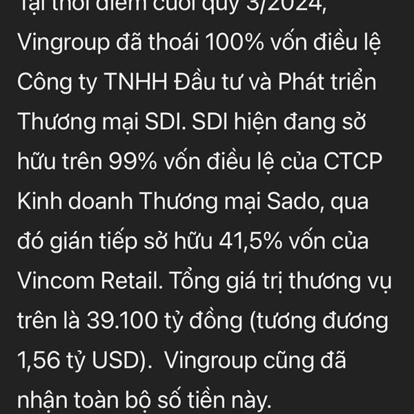 1/ VRE đã được Vingroup bán từ năm ngoái với giá 39 nghìn tỷ cho nhà đầu tư khác