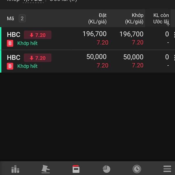 Tôi thấy điều lạ : Mấy mã hot uptren thì đặt lệnh mua bán thường khoảng 100k/ bước giá và khớp lệnh vol lớn. Còn em HBC này thì bán toàn gấp 2-4 lần mua và khớp lệnh một chút cho có thanh khoản :))