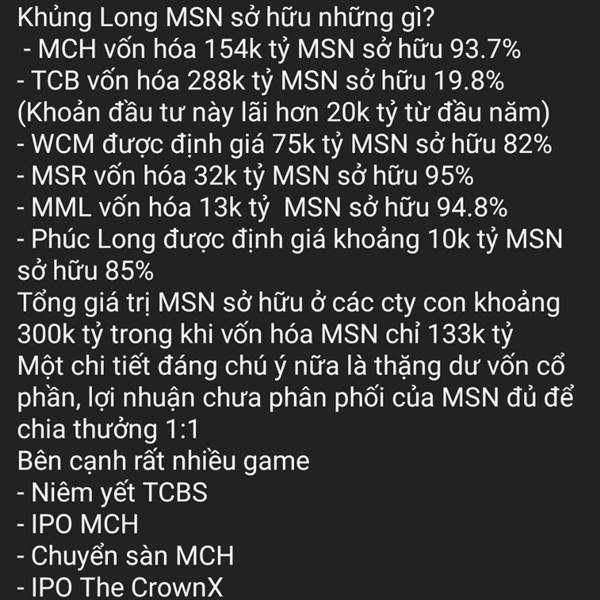 - MCH vốn hóa 154k tỷ MSN sở hữu 93.7%