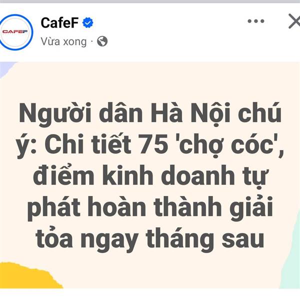 Đây là 75 "chợ cóc", điểm kinh doanh tự phát thuộc nhóm 1, tức nhóm lấn chiếm lòng đường, vỉa hè, “điểm nóng” ảnh hưởng đến an toàn giao thông, trật tự văn minh đô thị gây bức xúc dư luận. Theo lộ trình, nhóm 1 hoàn thành giải tỏa trước ngày 30/1/2026.