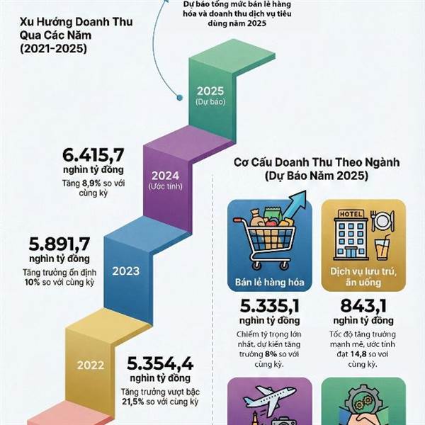 Năm 2025, quy mô thị trường bán lẻ Việt Nam ước đạt khoảng 269 tỷ USD, tổng mức bán lẻ hàng hóa và doanh thu dịch vụ tăng 9–10% so với năm trước - mức cao nhất trong 5 năm gần đây.