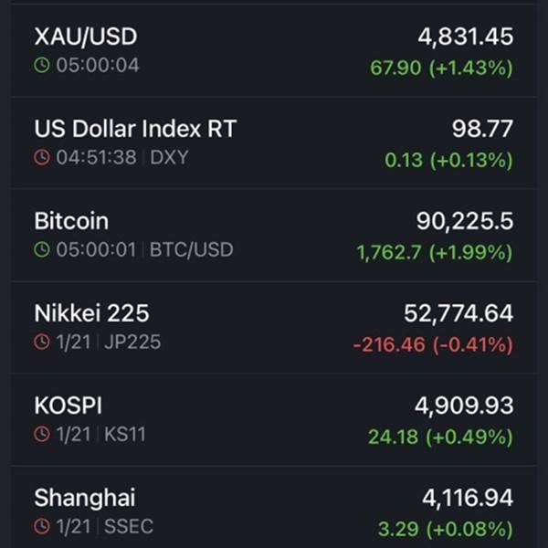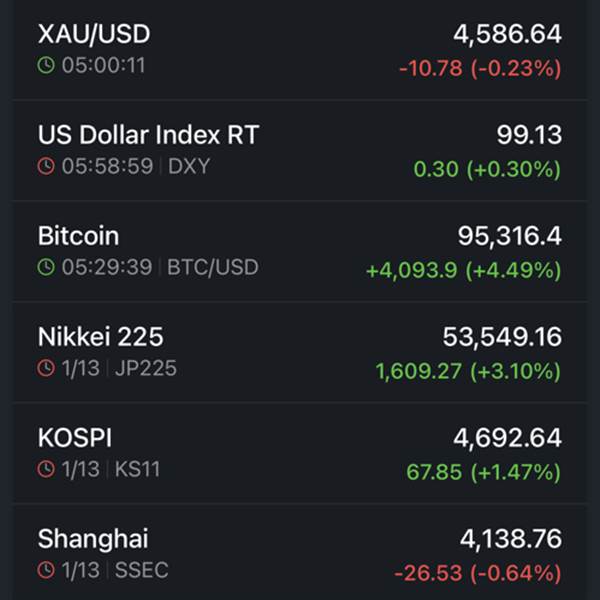 Tỉnh dậy tập thể dục thấy TT tài chính thế giới khá biến động: - DJ giảm gần 1% - Vàng thì vẫn giữ ở mức cao 4k5-4k6 - BTC vừa kéo 1 gậy xanh lè lên 96k => Không rõ Vịt hôm nay xanh đỏ sao đây 🤔