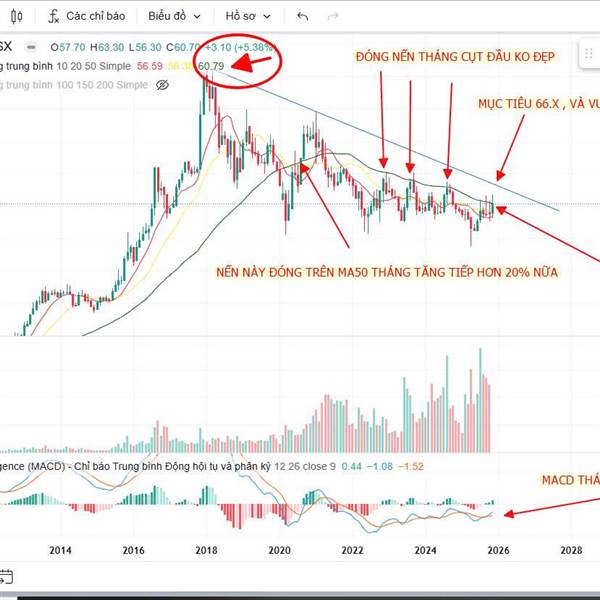 -Hôm qua mình có viết 1 bài nhận đinh về VNM đóng nến tháng 11 trên 60.8 ở MA50 tháng là sẽ rất đẹp. mục tiêu 66.x và hơn thế nữa. Mình hôm nay có chart để thêm vào cho các nhà đầu tư tham khảo. -À bê...Thêm
