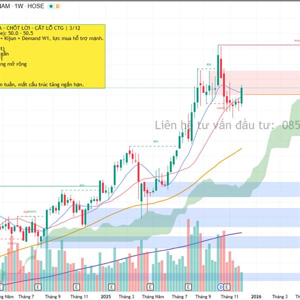 → Vùng hợp lưu MA20 + Kijun + Demand W1, lực mua hỗ trợ mạnh.