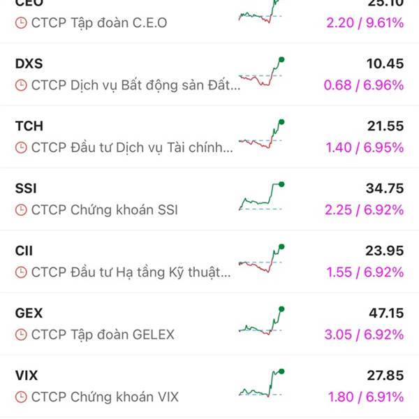 CII CEO TCH một ngày 3 cổ phiếu đều vượt đỉnh và tăng trần.