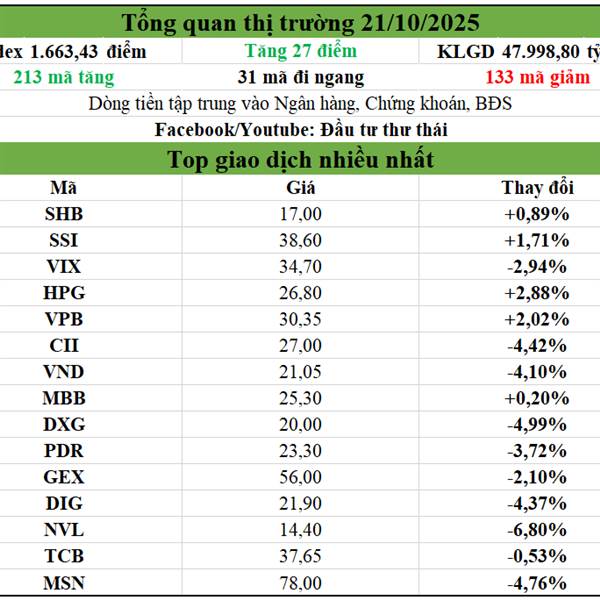 Tổng quan thị trường 21/10/2025