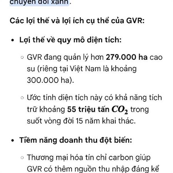 Tín chỉ cacbon dự kiến vận hành tháng 5/2026 GVR sẽ hưởng lợi nhiều nhất cùng với kỳ vọng: 1. Câu chuyện thoái vốn 2. Câu chuyện chuyển đổi đất kcn 3. Đồng Nai lên Trung ương 4. Tiền mặt nhiều,tài sản ...Thêm