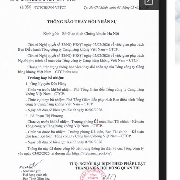 Báo cáo tài chính quý IV/2025 của ACV do ông Lê Văn Khiên, Thành viên HĐQT ký xác nhận, thay vì ông Vũ Thế Phiệt, Chủ tịch HĐQT.