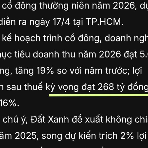 Một doanh nghiệp bđs vốn hoá 17k tỷ mà kế hoạch lợi nhuận chỉ 268 tỷ chắc đớp mẹ nó hết rồi . Bố lạy mày đó thìn mục đích lên sàn chỉ để lừa đảo nđt. Sớm muộn thằng thìn cũng đi tù thôi