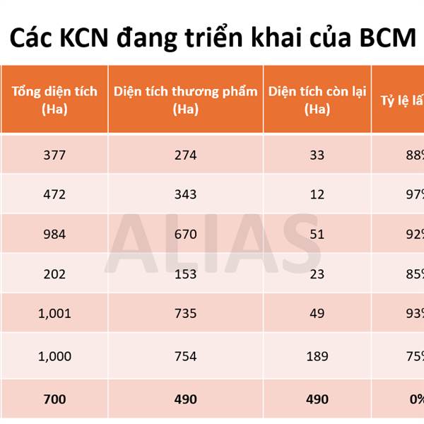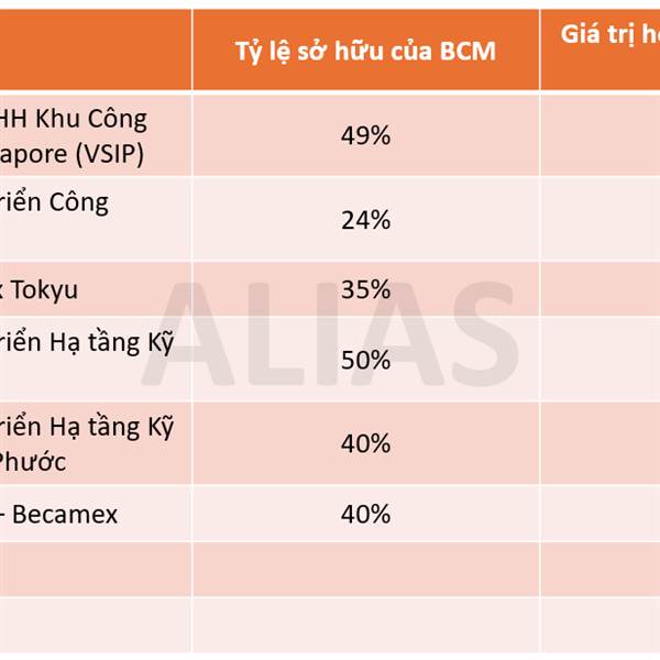 BCM: quỹ đất khu công nghiệp sẵn sàng cho thuê 1600 ha. Quỹ đất bất động sản dân cư 1200 ha. Danh mục đầu tư các cty con, cty liên kết đến 18k tỷ. Chuẩn bị làm 2 đại dự án đường sắt hơn 300k tỷ. Trong...Thêm