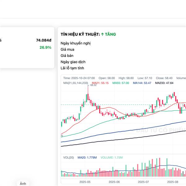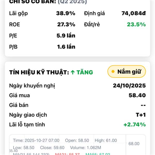 Giá 63.x, target bảng nhà mình đang 74k (+17%)—đi từ tốn, khỏi chen lấn. 😎
